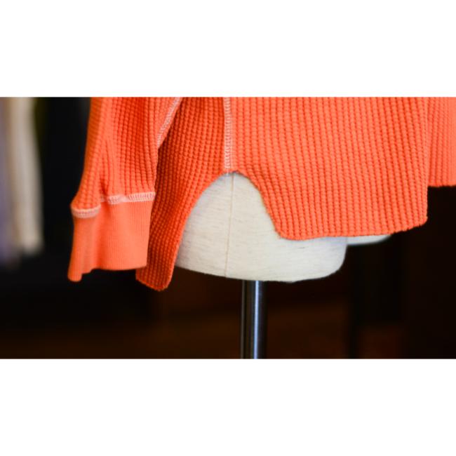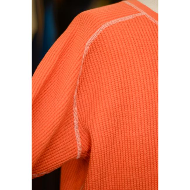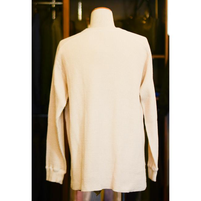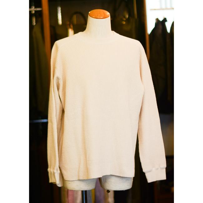 通常の2重引き揃えワッフルよりさらにしっかりと詰めて編み込んだ、完全オリジナルの風合いを持つワッフル生地は、軽すぎず存在感のある1枚です。