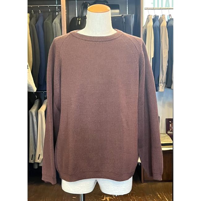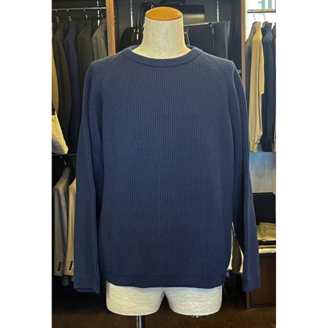 英国血統を引き継いだ、豪州シロップシャー羊毛を使用したぎっしり目の詰まった両畦のクルーネックニット