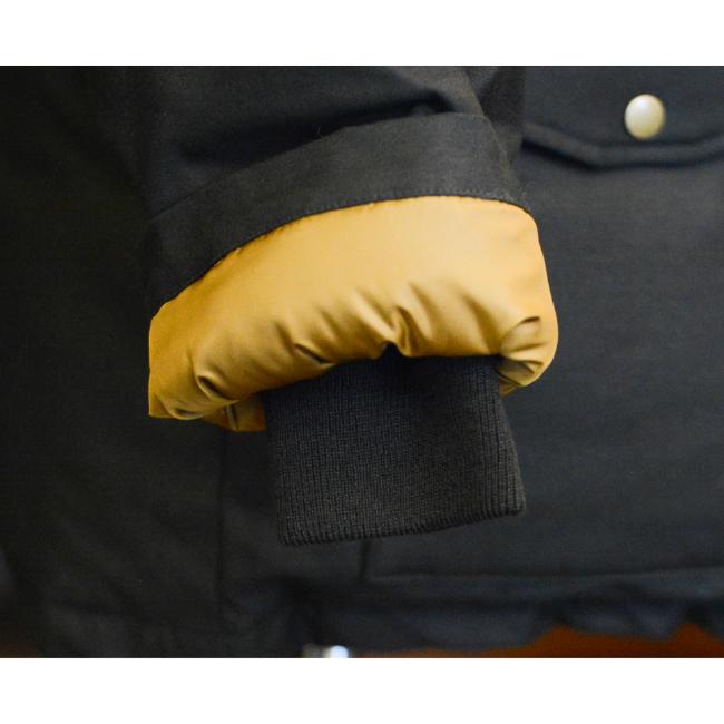 フロントは風や雨雪の侵入を防ぐダブルフロント仕立てになっており、袖口内には、冷気をシャットアウトするリブが内蔵されております。