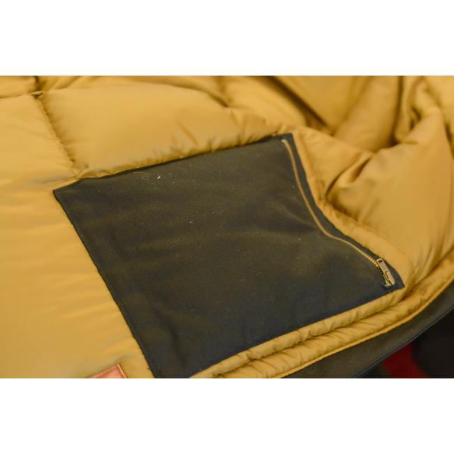 裏素材はダウンの暖かさを肌に感じさせる高密度ポリエステルが採用されております。