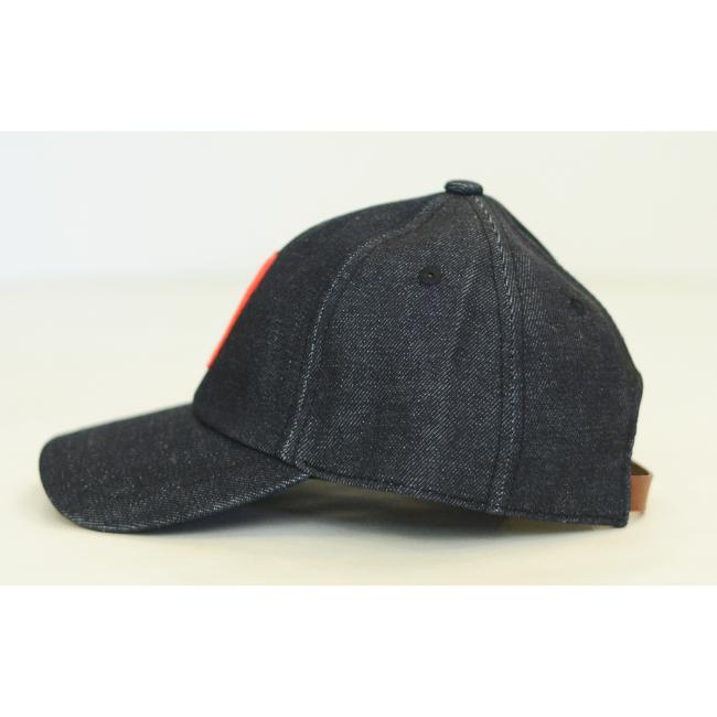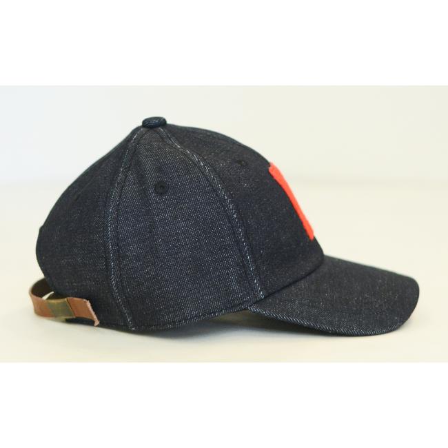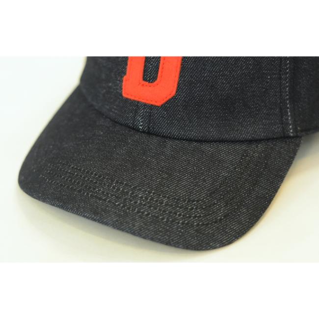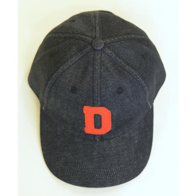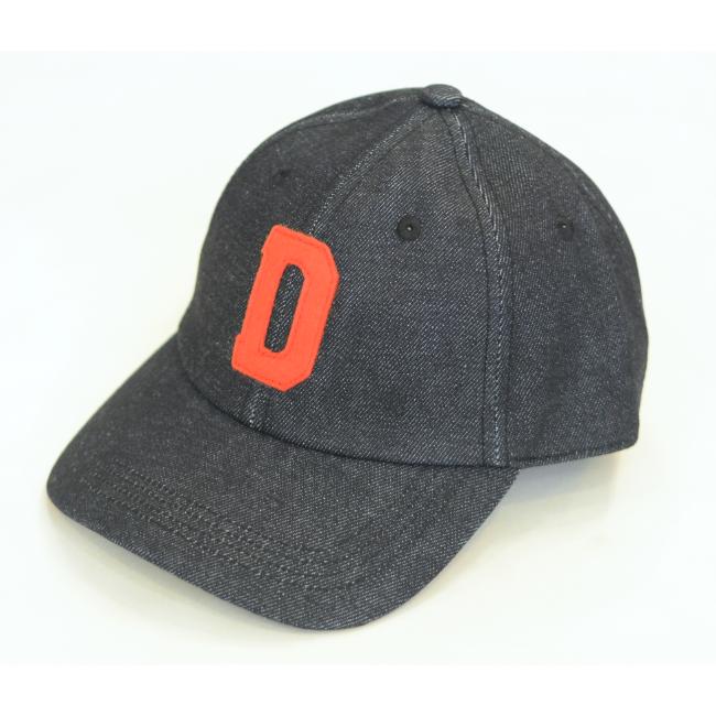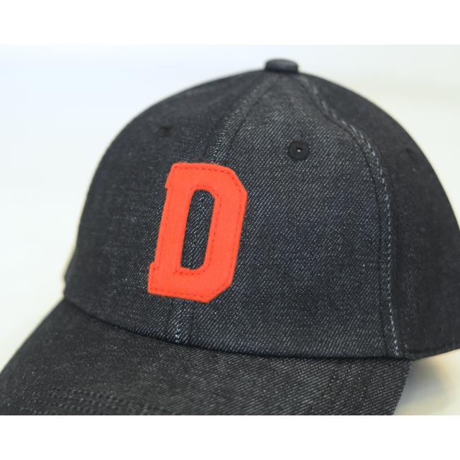ブランド名の頭文字をあしらった”D”のアップリケがアクセントのベースボールキャップ