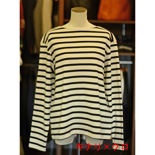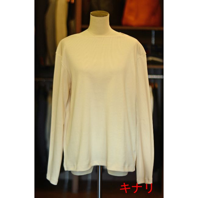 首周りがすっきりと見える独特なカッティングのボートネックで、カジュアルながら上品な仕上がりになっています。