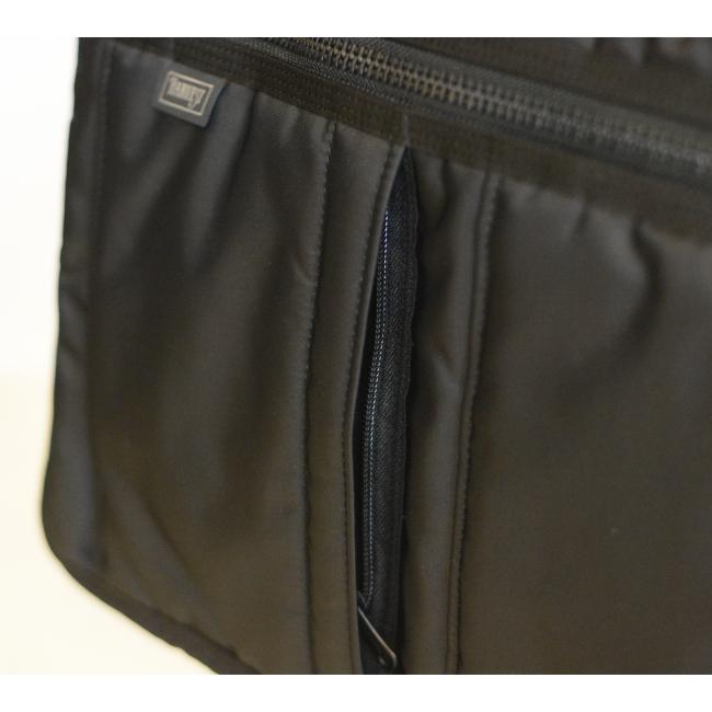 メイン収納部の前面側には、A4書類や雑誌が収まる大型ポケットを装備しており、さらにその前面には使用頻度で使い分けられる、上下2段フロントポケット前面には、独立した上下2段のファスナーポケットを配置しております。