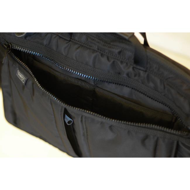 スリムな薄マチ設計で、人混みや移動の多いシーンでもかさばらず快適に持ち運べる2WAYビジネスバッグです。