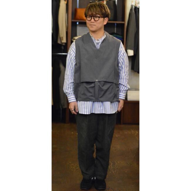 その多くのアイテムには、様々な着こなし方ができる工夫が施されています。デザイナーである乗秀幸次が理想とするのは、着る人それぞれの経験や考え方を尊重し、人間の多様性を後押しするようなワードローブ。