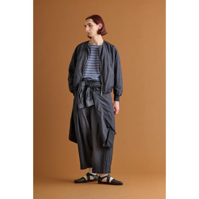 その多くのアイテムには、様々な着こなし方ができる工夫が施されています。デザイナーである乗秀幸次が理想とするのは、着る人それぞれの経験や考え方を尊重し、人間の多様性を後押しするようなワードローブ。