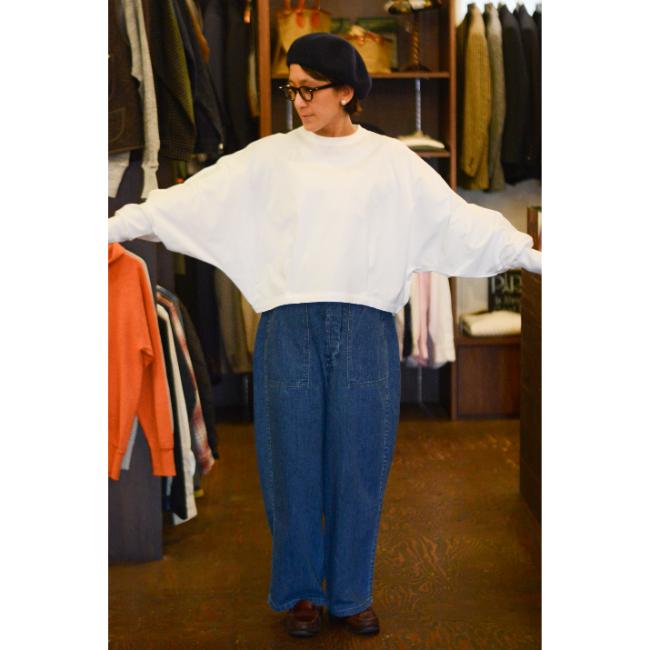 袖付けが広くゆったりしていて袖口に向かって細くなった特徴的なドルマンスリーブになっております。