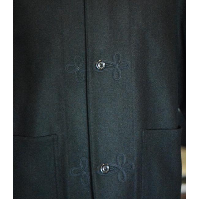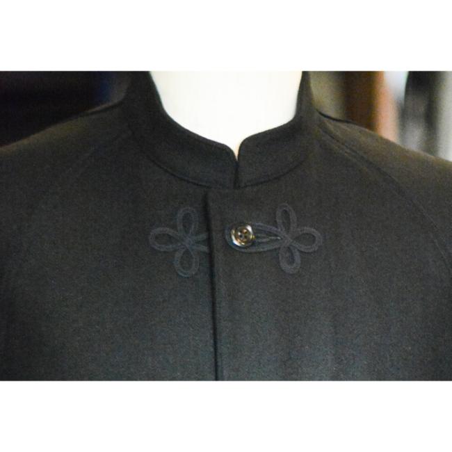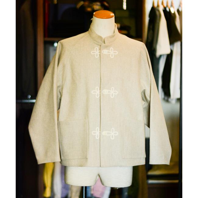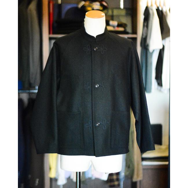 フロントにはチャイナジャケットを髣髴させる刺繍が施されており、シンプルながらクラシカルな雰囲気も漂う一着となっています。