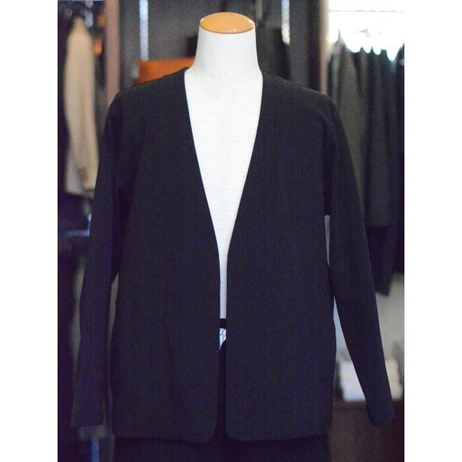 留めのないノーカラーの羽織りのデザインのカーディガンです。