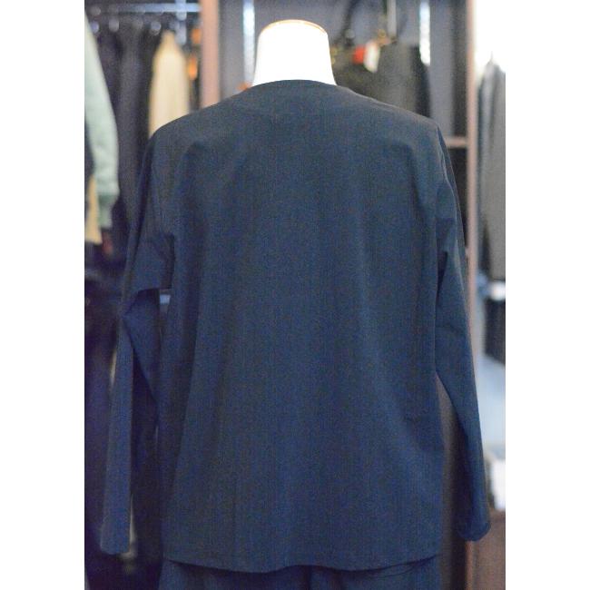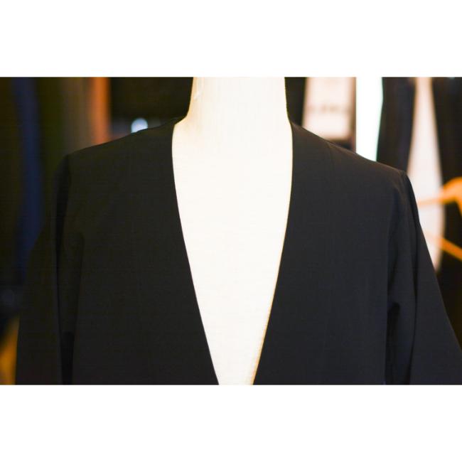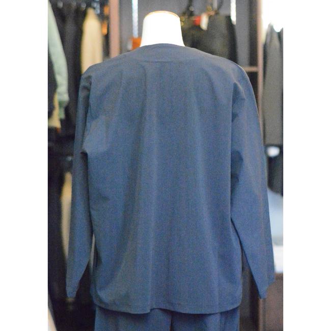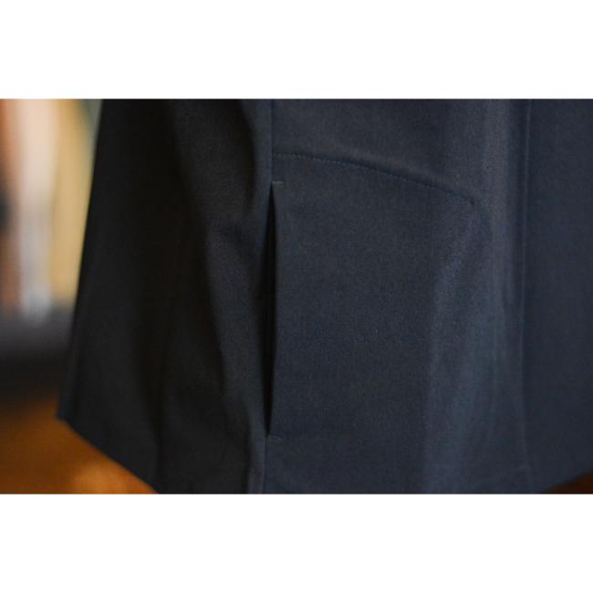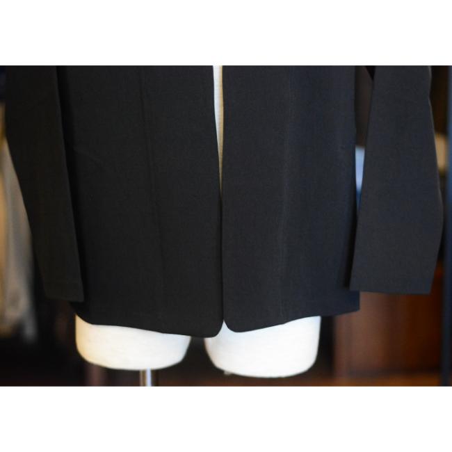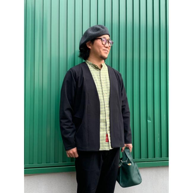 キレイ目にも、カジュアルにも使えるノーカラージャケットです。