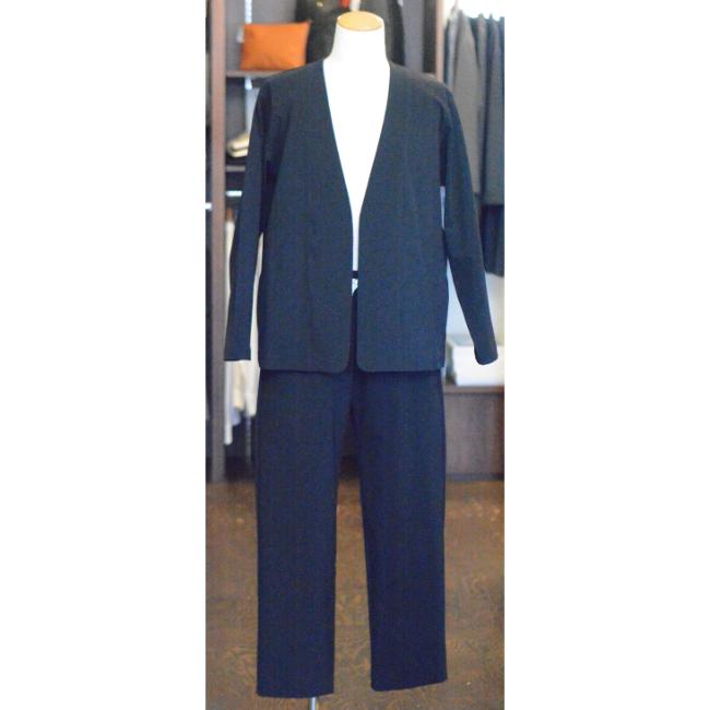 別売りで同色、同素材でノーカラージャケットもございまして、セットアップとしても合わせて頂けます。