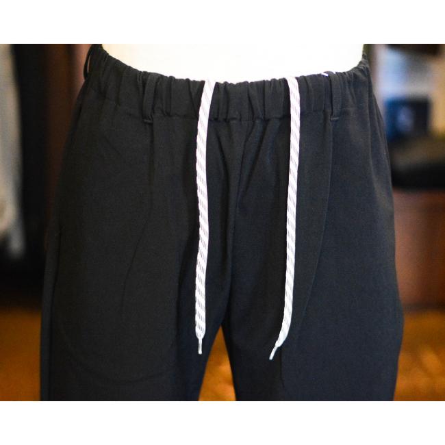 ウエストは総ゴム仕様で、紐でサイズ調整できるイージーパンツです。