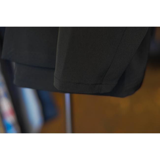 シックアンドシンといわれる太さの異なる糸を使うことにより生まれるムラのある表情感と、軽量かつ接触冷感性のある着心地の良いドライタッチのポリエステルツイルを使用しております。