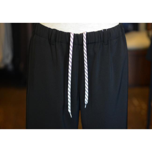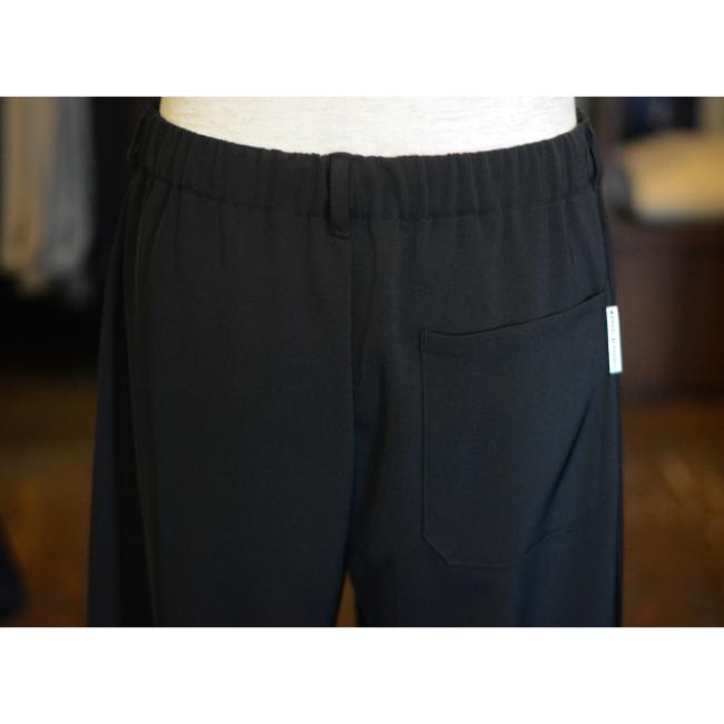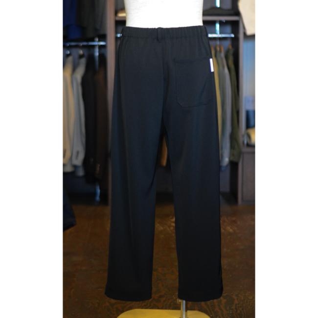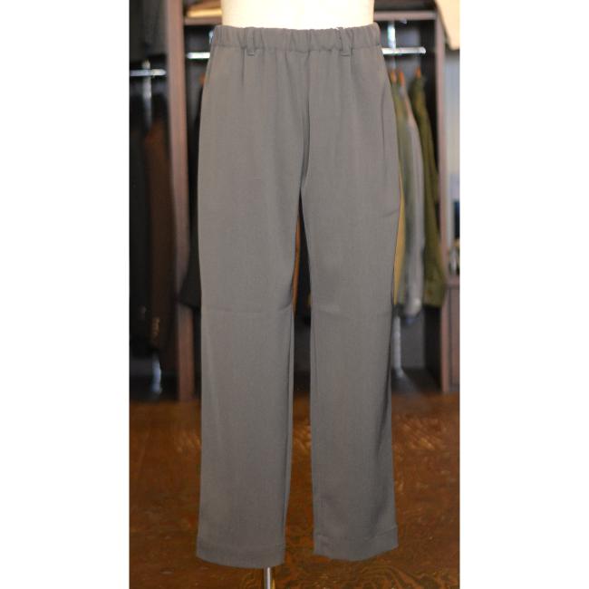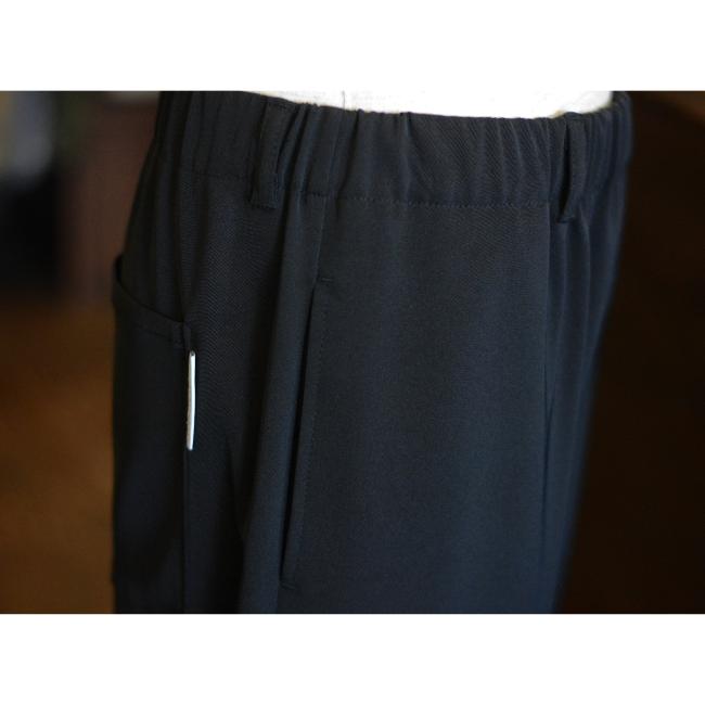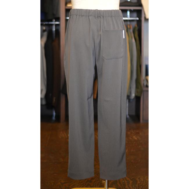 ポリエステルの強撚糸ならではの接触冷感性と軽い生地感が特徴のツイルを使用したテーパードイージーパンツ