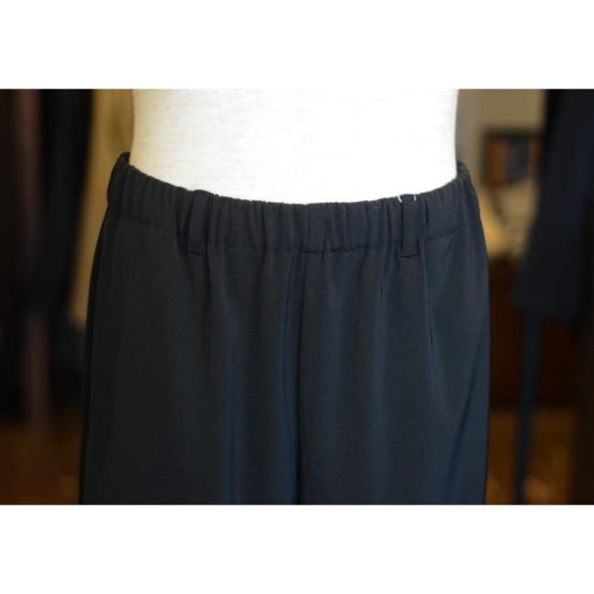 ポリエステルの強撚糸ならではの接触冷感性と軽い生地感が特徴のツイルを使用したテーパードイージーパンツです。