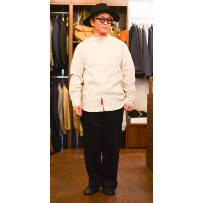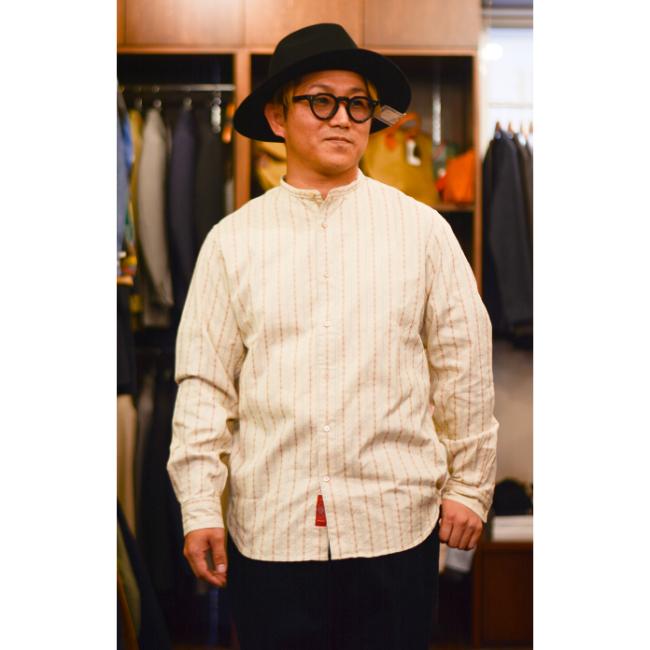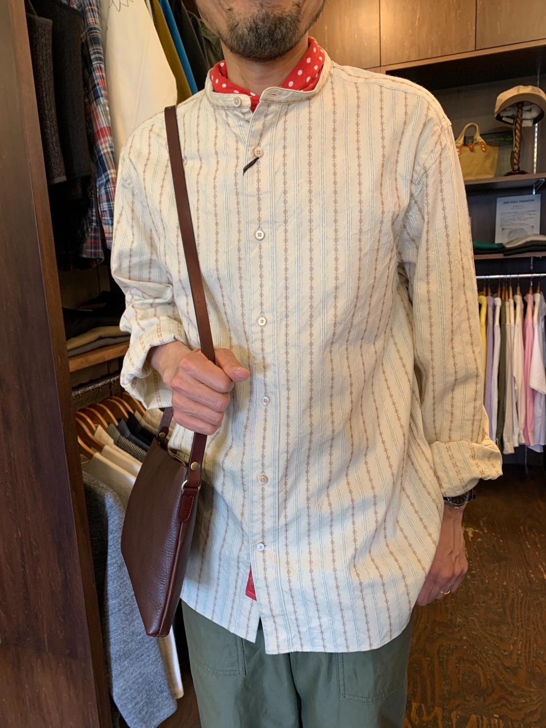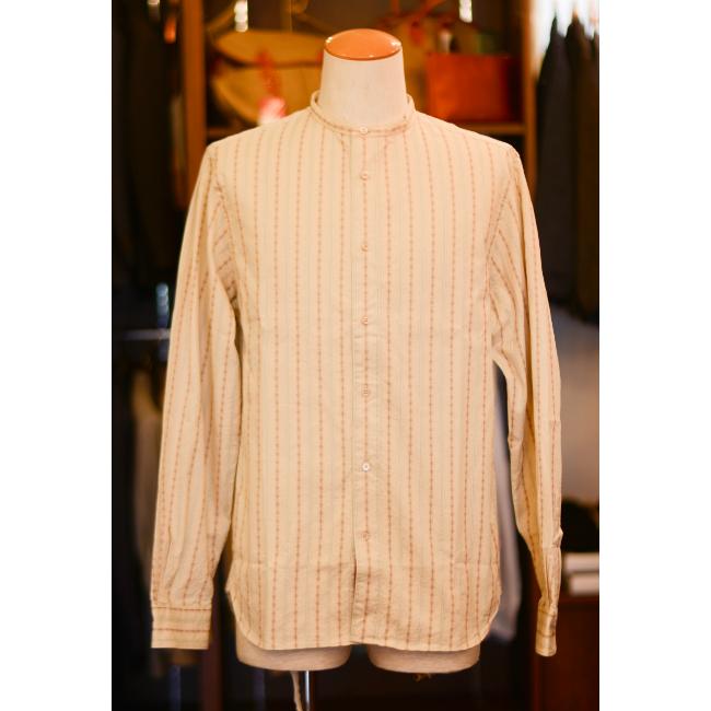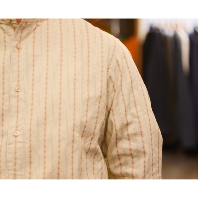 100年前のデザインをモチーフにオリジナル生地を使用したスタンドカラーシャツ