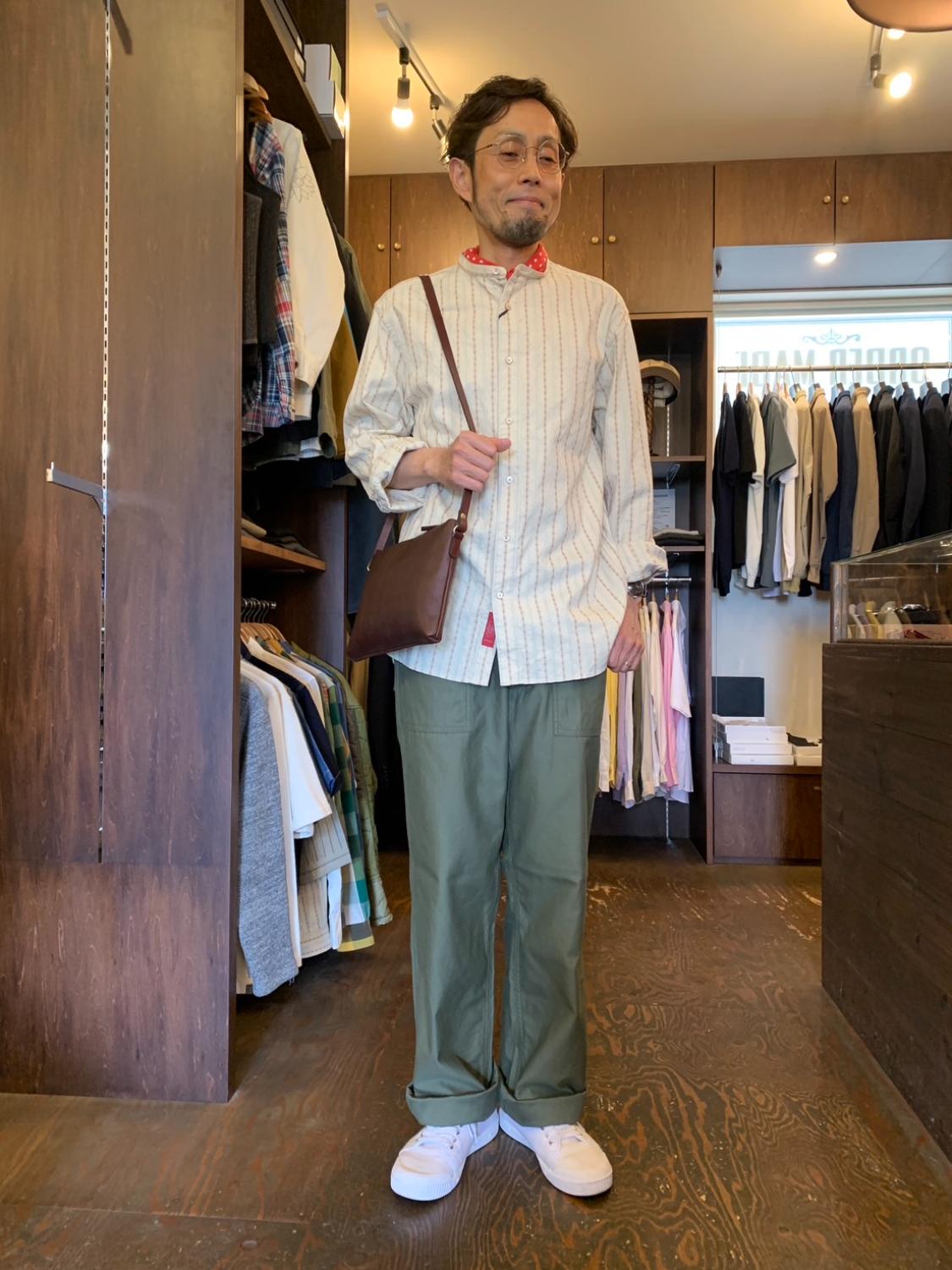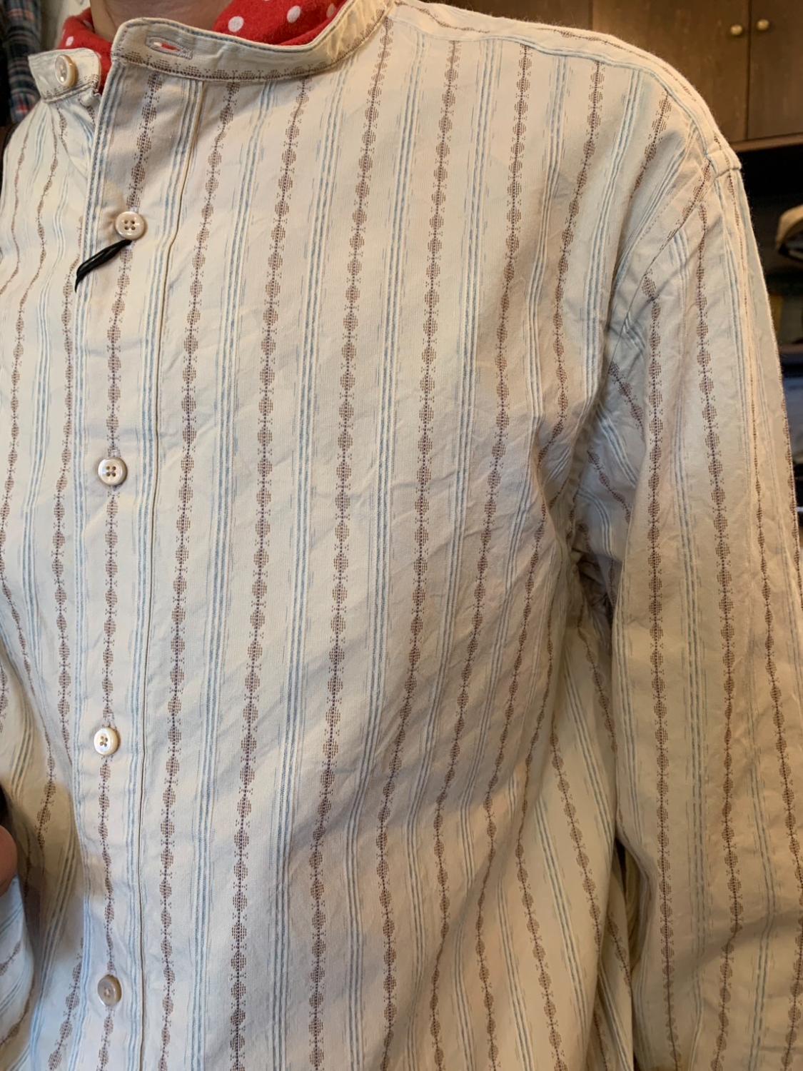 100年前のデザインをモチーフにしたオリジナル生地を使用したスタンドカラーシャツです。