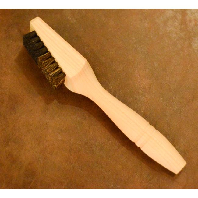 2色の馬毛でプロのブラシを1本に凝縮した染み抜きブラシです。