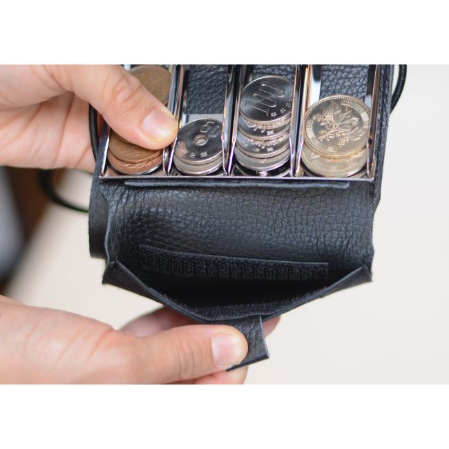 コインフォルダー金具下部面には、マジックテープ止めのポケットが配されており、レールに入らない 1 円、5 円を収納できます。