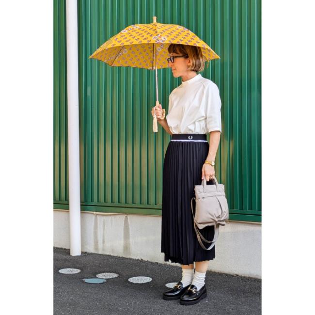 持ち手がバンブー素材のARLES FLOWER柄の日傘