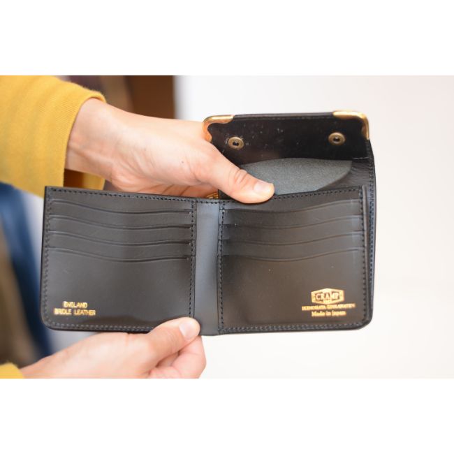 • Cramp(池之端銀革店)【UKブライドルレザー】サイド金具 二つ折り財布【Cr-915】