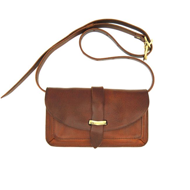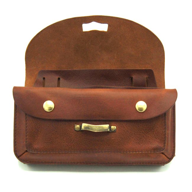 フロントのメインフラップをストラップ留めにし、1つ1つ丁寧に手作業で削り出し磨き上げたHaruオリジナルのサルカン金具を使用しています。