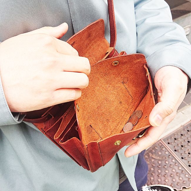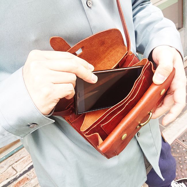 シンプルな作りで、持ち運びが楽なちょうど良いサイズのショルダーウォレットです。