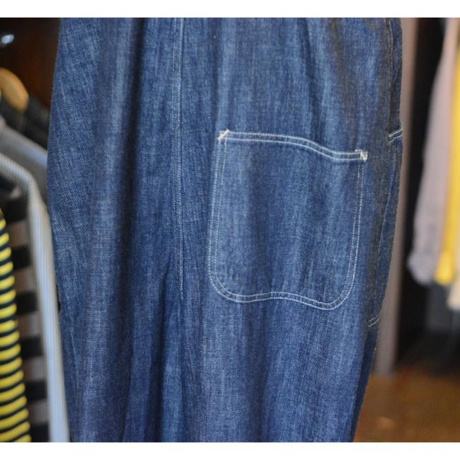 D.M.G.らしさのあるワークデニム生地で、粗野な質感で白場の多いインディゴ染めの落ち着きのある色合いが特徴です。