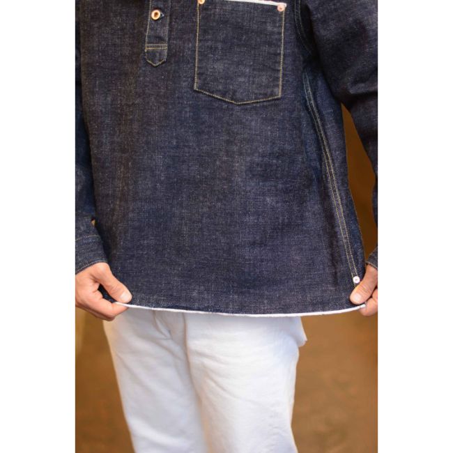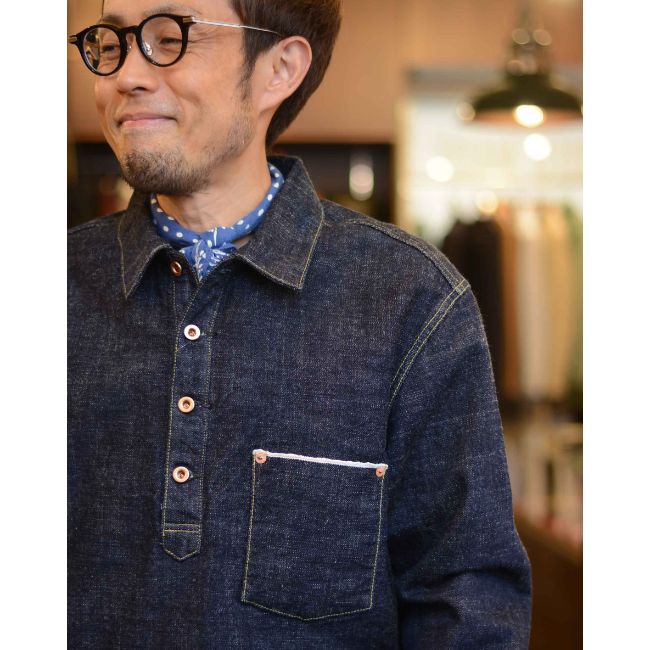1900年代初頭に鉄道・建設現場と仕事場で、作業着として生まれたデニムワークジャケットの原点をベースに製作されたプルオーバージャケット。