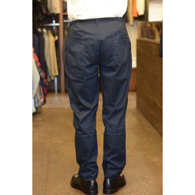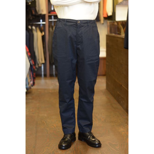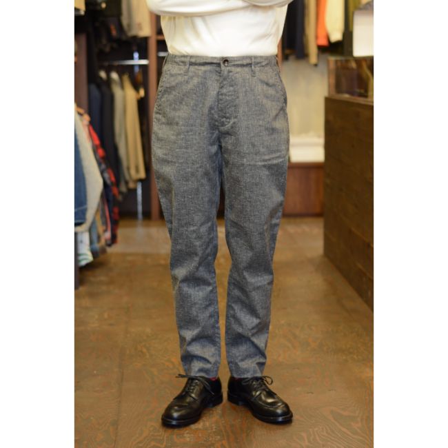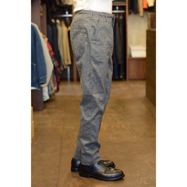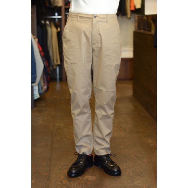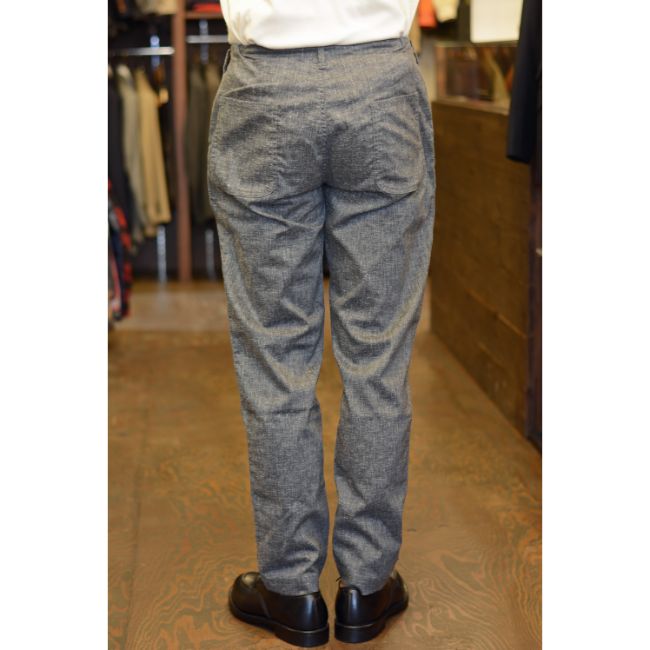シルエットは、腰回りと太ももにややゆとりがあり、裾に向かって程よくテーパードした、すっきりとした細身のシルエット。