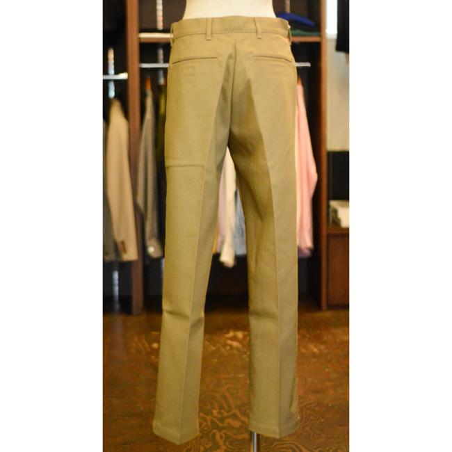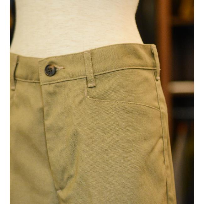 ゆるやかにテーパードがかかっており、太すぎず細すぎないシルエットは合わせるトップスを選ばず、長く穿いていただける1本に仕上げられております。