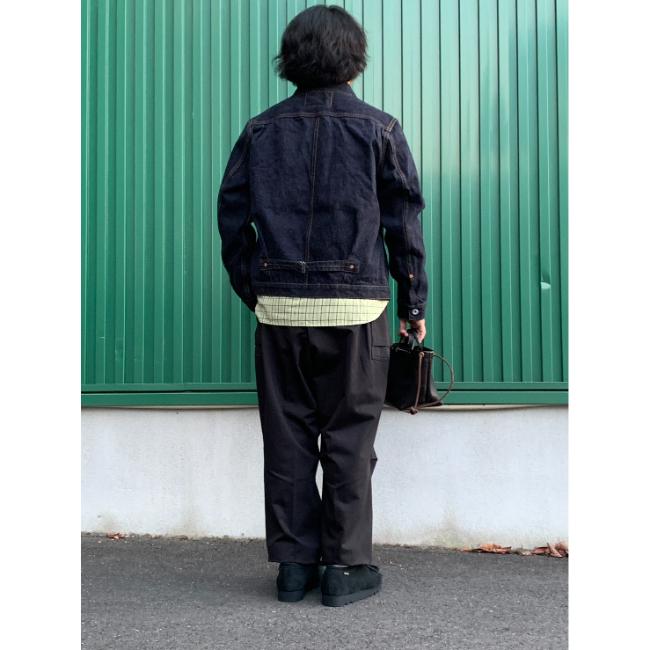 フロントはクラシカルなボタンフライ仕様で、ポケットはタック仕様のパッチ&フラップポケットを配置しております。