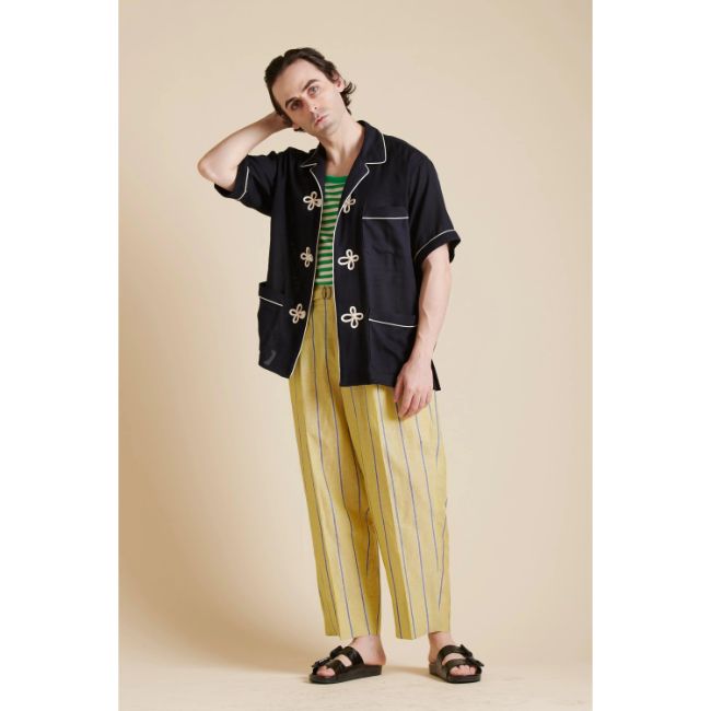 素材はHAVERSACKオリジナル生地の、キュプラリネンを使用したレガッタストライプ柄。