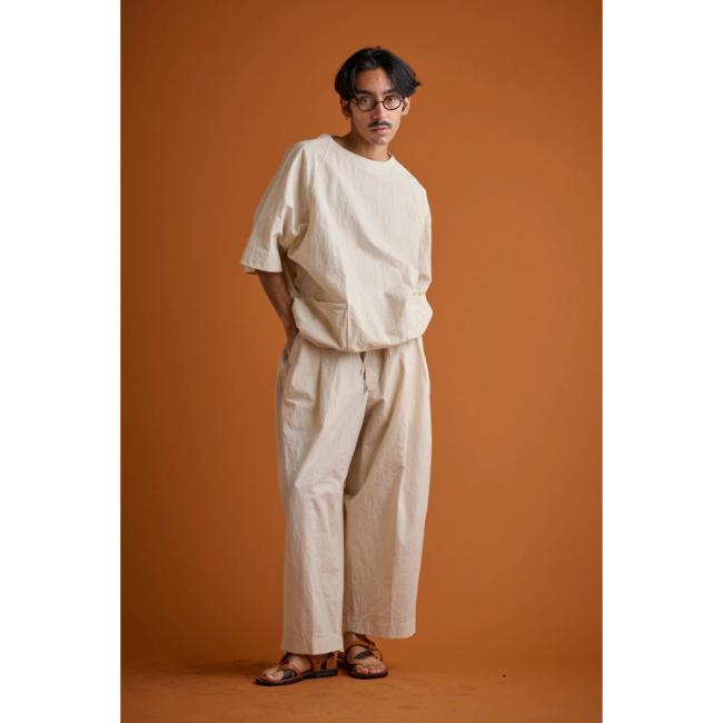 その多くのアイテムには、様々な着こなし方ができる工夫が施されています。デザイナーである乗秀幸次が理想とするのは、着る人それぞれの経験や考え方を尊重し、人間の多様性を後押しするようなワードローブ。