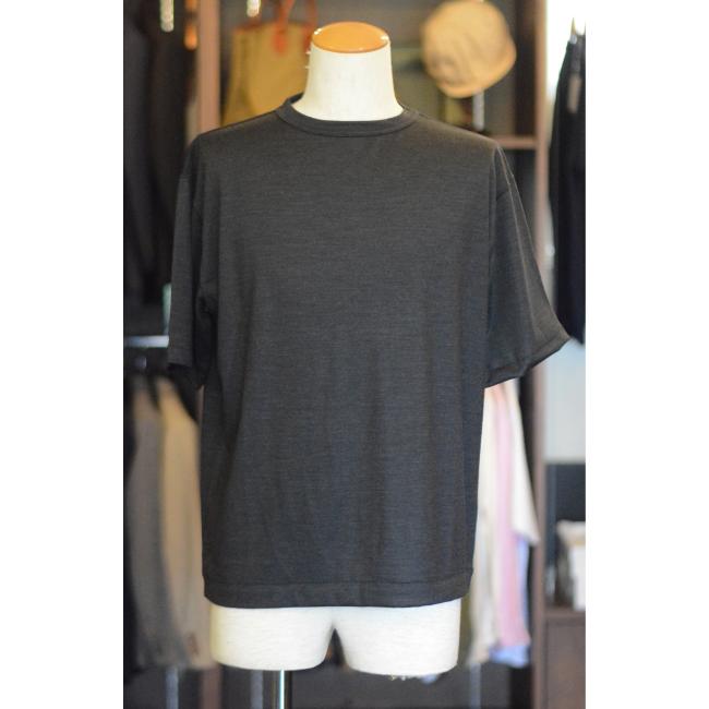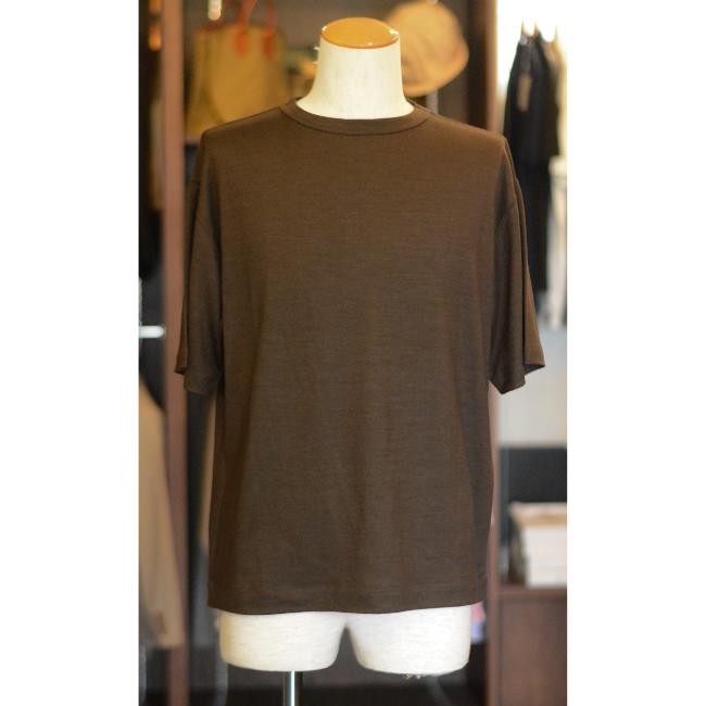 Super100のウール天竺素材で薄手に仕上げた、TECHWOOLを使用したクルーネック半袖Tシャツ。