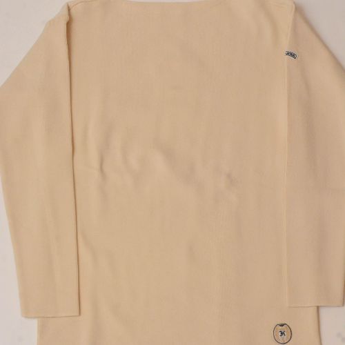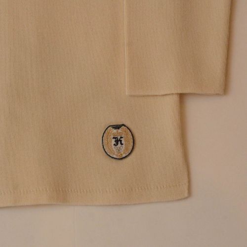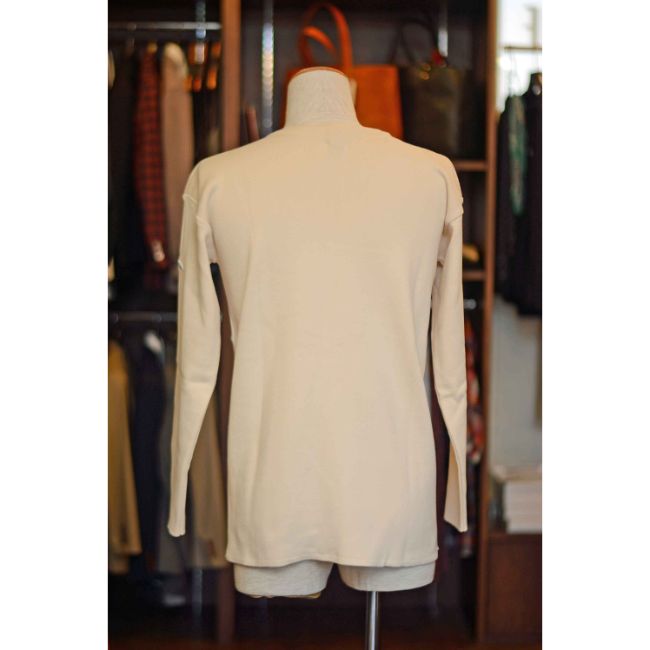 ニットの機械でしか表現できない伸縮性のある生地は「ヴィンテージリブ」と呼ばれ、着用時にやさしく包み込むように伸張し、洗濯と着用を繰り返すことで体にフィットしていきます。