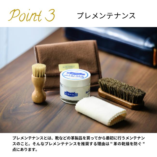 皮革が持つ自然な風合いを引き出すのにも適しているので、経年変化、エイジングを楽しみたい方や、あまり靴を光らせたくない方にもおすすめです。