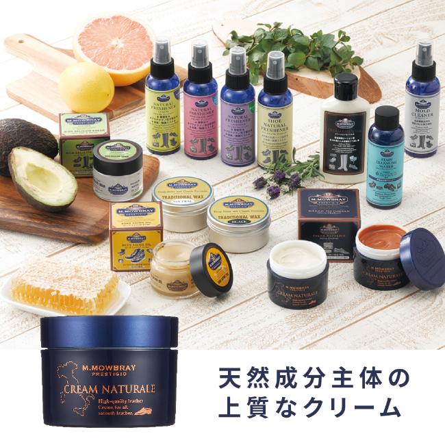 上質な商品で、上質なシューケアを。そんな想いを込めて「M.MOWBRAY PRESTIGIO(エム.モゥブレィ プレステージ)」シリーズが誕生しました。既存のラインナップのレシピを活かしながらも、原材料を「ナチュラル」「天然」「上質」なものにこだわり、厳選しています。昨今、環境問題への関心やエコに関する興味が広く一般的になりつつある中で、消費者の皆様に納得していただいた上でご使用いただける商品開発を進めました。ワンランク上のシューケアシリーズ 「M.MOWBRAY PRESTIGIO(エム.モゥブレィ プレステージ)」 をどうぞお楽しみください。