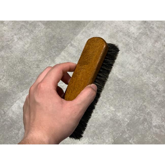 ”馬のしっぽの毛”で作られており、毛が柔らかく密度の高いホースヘアブラシはホコリ落としや普段のお手入れに最適です。