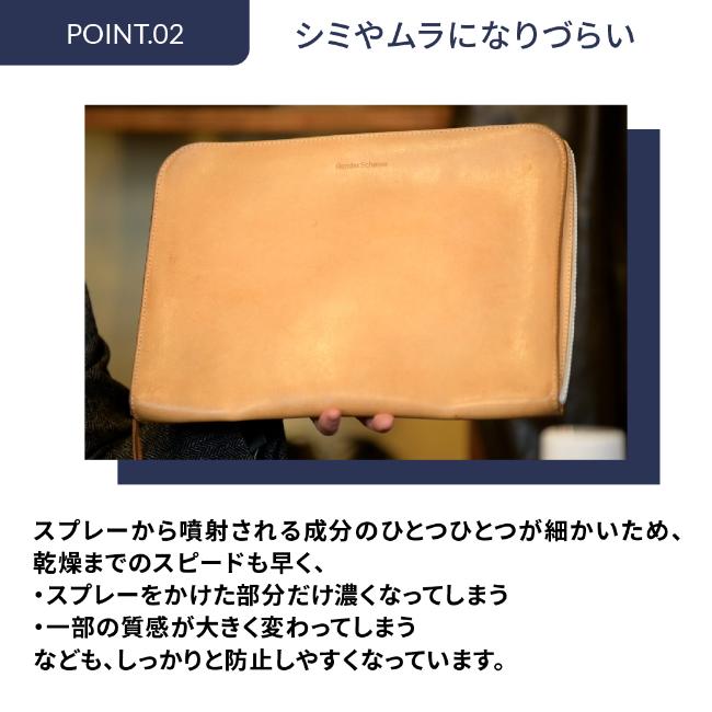 クリームでケアをするとシミやムラになりやすい、ヌメ革やシープレザーが代表としてあげられるデリケートな革です。