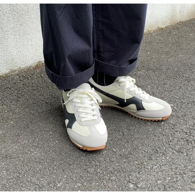 メインの素材には、目の細かい合成繊維と起毛素材を組み合わせたレトロな雰囲気のアッパーに、ボリュームを抑えたソールを組み合わせ、今のライフスタイルに使いやすいように合わせてモダナイズされております。