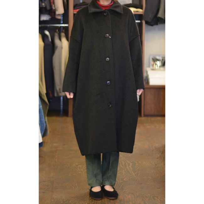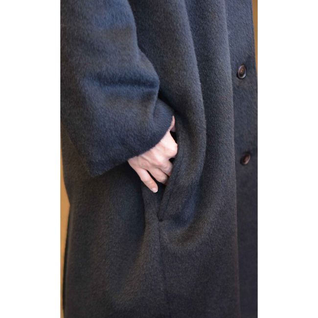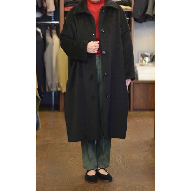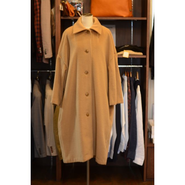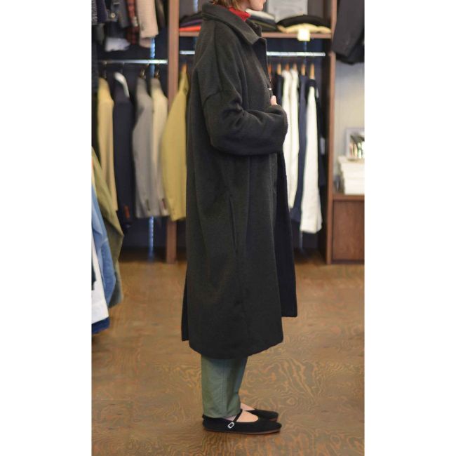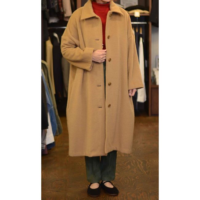 美しい毛足のシャギー素材を使用したビックシルエットウールモヘアコート