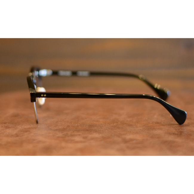 1940年代の最古のブロータイプをデザインソースにしたやや下がった智とボストンとウエリントンを組み合わせたような玉型を採用した新鮮なスタイル。