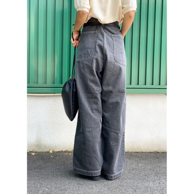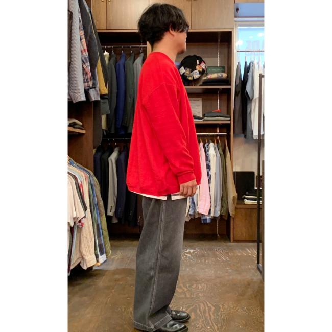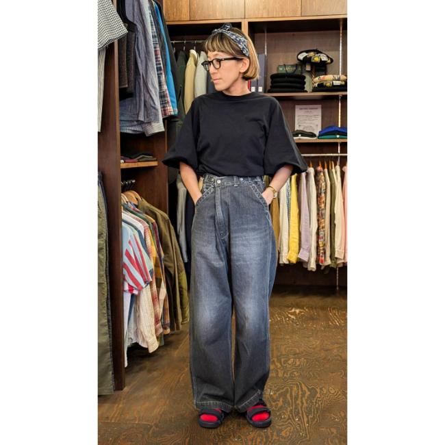 シルエットは、ヒップから全体的に太めのワイドシルエットになっております。