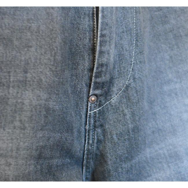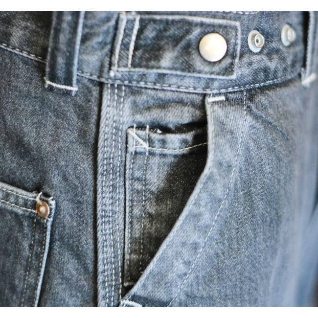 フロント右ポケットにはコインポケットが配され、各所のリベットやUSED感溢れるボタンなど随所にこだわりが感じられます。