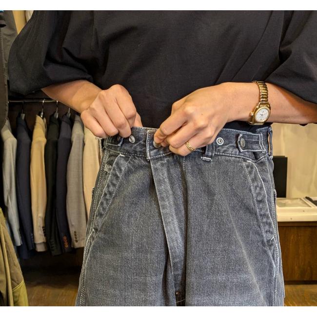 ウエストには、スナップのアジャスターが付属しており、大きめのサイズをウエストを絞って着用が可能になっています。
