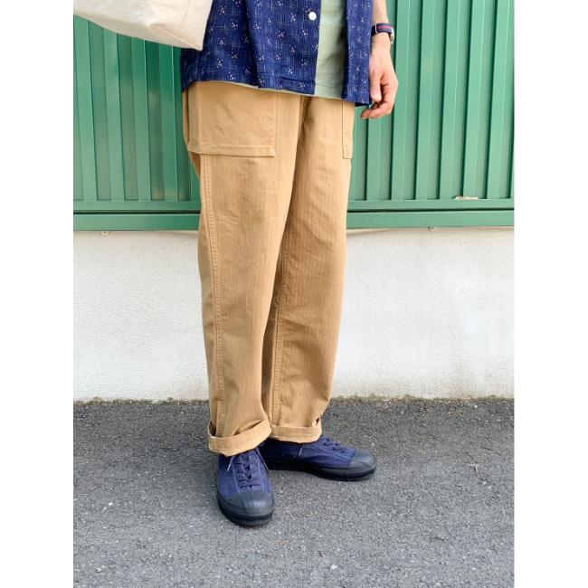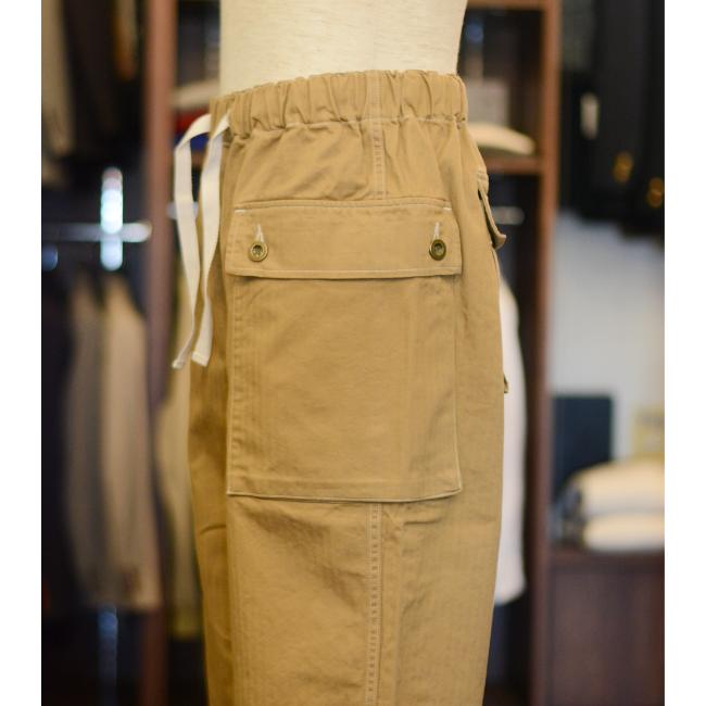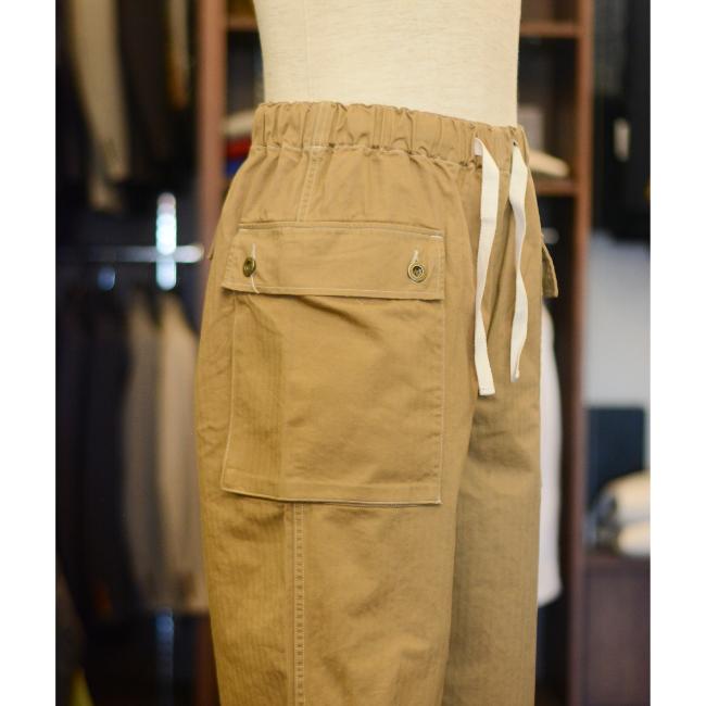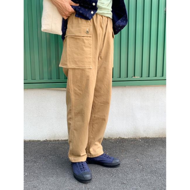 1944年からUSMC(アメリカ海兵隊)に展開されていたP-44トラウザー、通称サルポケ(モンキーパンツ)をイージーパンツ仕様にアレンジされたパンツです。