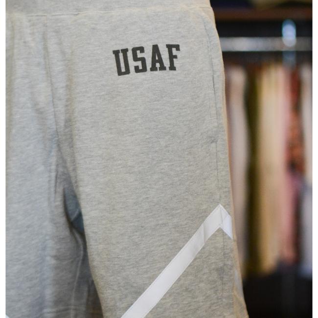 USAF(United States Air Forceの略で、アメリカの空軍のことを指します)のトレーニングショーツをベースにスウェットショーツにアレンジしたショーツです。