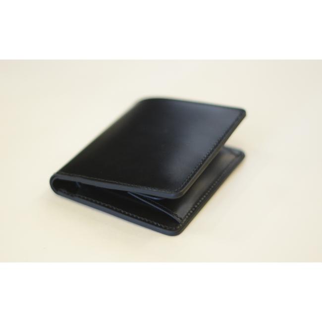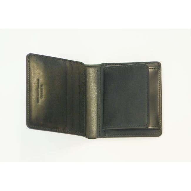 1911年創業の山陽社製の「フルベジタブルタンニングレザー(ヌメ革)」を使用したコンパクトサイズな2つ折り財布