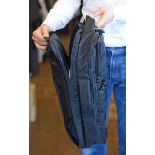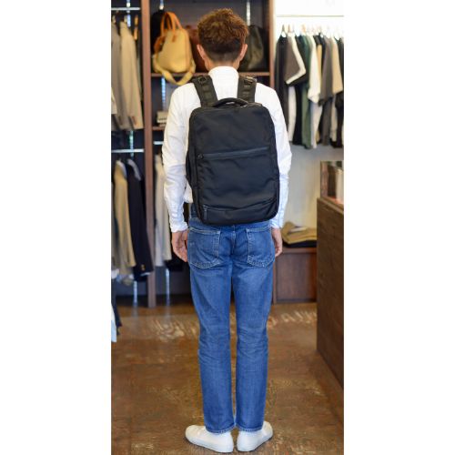 スマートなデザインとサイズ感でシーンを選ばずに使用することができ、細身の幅がコンパクトに背中に収まります。